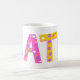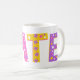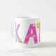 Dekorativ stjärna och blommor grafisk Kate-bokstavsmugg. Vacker grafisk design med stjärnor och blommor. © Unik typografi konst och design av Sarah Trett för www.mylittleeden.com på Zazzle.