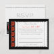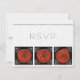 Detta svarskort för bröllop på 4,25"x5,5" har en snygg och modern originaldesign med subtila grå och vita pinstripor och tunna svarta fjäderavdelare som påminner om en arkitektonisk kolonn, krönt med en Rennie MacIntosh-inspirerad kant med röda rosor på svart bakgrund med vit ornamentik i craftsmanstil. All text kan anpassas. #zazzlemade