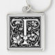 Dekorativt brev initial "T", Fyrkantig Silverfärgad Nyckelring