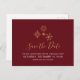 En jul party sparar vykortet. Designad med en illustration av finare golden snöflingor med kristallina former av elegant. En röd bakgrund för mörken.
