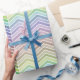 Dekorativt regnbåge och texturerad Chevron Mönster Presentpapper