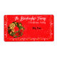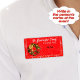 Hjälp dina gäster att minnas eller lära sig namn på din julfest genom att använda en pappersetikett namnskylt med en dekorerad julkrans på den vänstra kanten med en festlig röd bakgrund. Storleken och designen på leveransetiketten ger utrymme för att skriva in deltagarens namn på festen. Anpassa texten, ta bort eventuell text eller redigera med hjälp av designverktyget för att välja en typsnittsfärg, stil eller storlek som du föredrar.