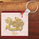 Kinesisk mönster med blek rosa kinesiska Fu-ideogram som bakgrund, gult 2024 + gult kinesisk dragonideogram och gyllene "Dragens år". Utforma på fyrkantig nyckelkedja med monogram eller första namn för att anpassa sig bakåt. Matchande hälsningskort, vykort, klistermärke och annat...
