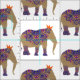Söt dekorerade på ett typiskt sätt den indiska elefanten i vackra toner av blått, orange, lila och ljusbrunt med ett blommönster av söt. Idealisk för en dekoration i nyfödd bebis eller barnrum.
