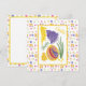 Ursprunglig illustration i oljepasta av ett stort färgat dekorerat Påskägg med lite kyckling, solljus och vinhyacint. Med anpassadets text som säger Glad påsk och Påsk blommönster ram. På baksidan finns det tomt utrymme för text med Påsk mönster ram och liten bild av daffodil Påsk i hörnet.