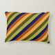 En accentkudde med ett mönster-mönster av flerfärgat diagonalt rand i oliv grönt, sage grönt, hasselnötsbrun, marin blå och bananblå gult.