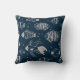 En söt kvadrat dekorativ kudde med en rik mönster av fisk som simmar i mörk blått vatten, skisserade i ett modernt sammanhang. En perfekt för hemmet med ett kusttema och strandhus. *Alla mina mönster är mina originalillustrationer och konst, och därmed subjekt till upphovsrättsskyddet. Kinda M. ____________________________________________________