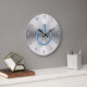 Datorns väggavtagningsklocka med modern simulerad bakgrund i metall designad för att se ut som en startknapp på en datorenhet, med siffror som står på klockan ansikte. Designad för ett killrum, en kontorsmur i ett bilföretag eller köksklocka i en ultratunn köldmiljö.