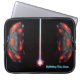 En fraktal representation av en atomkärna som delas av en högenergipartiklar. Text som läser, "Splitting the Atom" visas i blått och vitt.