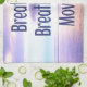 Bläddra in, andas ut, Flytta på, Motiverar och Idéer med det vackra havet i bakgrunden och moln för blå himmel och lila.
