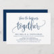 Denna moderna kalligrafidesign med tema för inbjudningskort (Dela lyckan tillsammans) är perfekt för din bröllopsflyktfirande/annonsfest. Lägg till dina detaljer i matchande marinblå typsnitt / bokstäver.