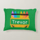 För barn med feta och färgstarka personliger för accentkuddar är underbar för rum, spelrum och hemkolingsområden. Utformningen har en delad styrbox med utrymme att anpassa med barnets namn i mitten, på gröntens bakgrund.