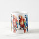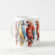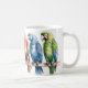 Färgfyllda macaw-parroter i en radillustration av kaffe mugg.