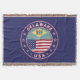 Delaware-bricka med flagga Delaware och flagga of USA färg, rundad form. Emblem of Delaware. Försegling till Delaware. Samling i USA Stater.