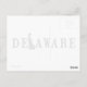 Denna enkla amerikanska stater-tema vykort med ordkonstdesign har namnet Delaware i feta versaler där bokstaven L ersatts med siluettkartan över delstaten ifylld med svart bakgrund för att matcha resten.