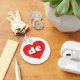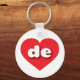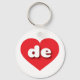 Den här nyckelringen har ett pulserande rött hjärta som innehåller det feta, vita, rundade nedre fodral brev de, en lekfull förkortning för delstaten Delaware, det första tillståndet.