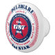 Dekorera ditt hem eller företag med den här unika keramiska knoppen som har en röd, vit och blå cirkelformad typografi med fakta om USA:s Delaware. Det blev en stat 1787 och är den första stjärnan. Dess huvudstad är Dover och dess förkortning är DE. Andra intressanta fakta är dess region, zona tidskoordinater, geografiska koordinater och namn.