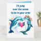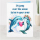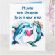 Delfin valentinskort med nygifta par som älskar med frasen Jag hoppar över oceanen för att vara i dina armar