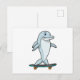 Delfin som rullskridskoåkare med skateboard vykort