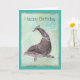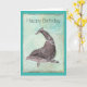 Ett akvatiskt födelsedagskort. En vänlig lekfull delfin som simmar mot dig i uppfriskande akvagrönt tropiskt vatten med bubblor och stänk runt omkring. Meddelande inuti kortet redo att anpassas eller lämnas som det är.