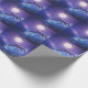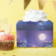 Natthav med tre lekfulla delfiner som läcker ut från havet på surfvåg och måne som lyfter på den tropiska bakgrunden Natt hav med delfiner som läcker ut under ett tropiskt månbelyst himlar. Tonbelyst hav, delfinernas lekande dans under stjärnorna. Delfin, måne, hav, hav, hoppa, himlar, natt, fisk, vatten, månljus, vilt, reflexion, natur, blått, landskap, bakgrund, sommar, moln, djur, skönhet