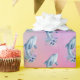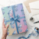 Vattenfärgdelfiner och blommor på en vattenfärgbakgrund med övertoningsregnbåge.