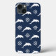 Nautisk mönster med silhuetter av delfiner och styrande hjul | © and ® Bigstock® - Med förbehåll för alla Höger.