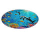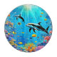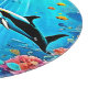 Lägg dig i en solupplyst reef. Den här teckningen visar delfiner som dykar upp i färglös korall och fisk. Se den här vibrerande scenen (den här designen är gjord med AI). Ställe beställer i dag och Kämpa på köpet!