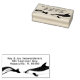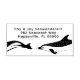 Delfiner returadress gummistämpel. Lång, smal stämpel fungerar bra på baksidan av kuvert. Designen är två delfiner - en svans av en och huvudet och större delen av kroppen av den andra - simmar längs under texten. Liten tryckt teckensnitt med utrymme för endast tre rader.