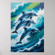 Delfiner som hoppar genom havsvågor Dynamisk marin Poster