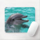 Ett gulligt fotograferar av en delfin huvud i blått-grönt frikändvatten, med en knappt synlig flipper. Underbar för någon delfinentusiast!