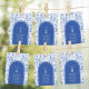 Dessa eleganta design särdrag delftblå och vita chinoiserie botaniska blommor och fåglar, kompletterat med modern typografi.