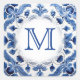 delft blue bröllop monogram fyrkantigt klistermärke