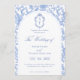 Delft Blue Floral Chinoiserie Monogram Wedding Inbjudningar