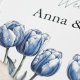 Lägg till ett litet elegant elegans till din mottagande bord med det här anpassadet Delft Blue Tulip Papper Underlägg. Den unika skalopade designen av kant och den klassiska blå och vita blommigten gör att det underlägg ett vackert och funktionellt tillägg till din bröllop-dekoration. Anpassa den till bröllop den 10.16.20XX, ord Bröllop eller parets namn Anna & James för en engångsdetalj som gästerna kommer att göra i kärlek.