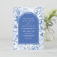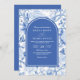 Delft Blue White Chinois Floral QR Code Wedding Inbjudningar