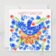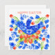 En fågel i det blå Delft-fineriet i Vår Tulips. Från handritade och målade Anni Arts illustrationer. Anpassa hälsning.