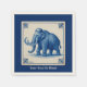 En humoristisk, monoton, blå ullig mammoth (mammathus primigenii) i stil i en Delft-bricka. Anpassa genom att lägga till egen text.
