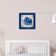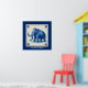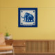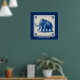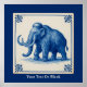 En humoristisk, monoton, blå ullig mammoth (mammathus primigenii) i stil i en Delft-bricka. Anpassa genom att lägga till egen text.