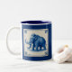 För köket i istidsåldern: en humoristisk, monoton, blå, ullig mammoth (mammathus primigenii) i stil i en Delft-bricka. Anpassa genom att lägga till en egen text på baksidan.