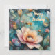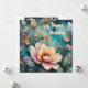 colorful apricot flowers and pink and green leaves on beautiful blue teal background
