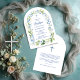 Delicate Digital Watercolor Blue Shades Floral Frame Arch Shape Baptism Invitation Cards.