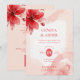 Delicate Romantic Flowers Juicy Red & Pinky Pink Editorial Wedding Invitation with Back QR Code.