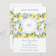 Delicate Lemon Branch and Flowers Tiles Wedding Save the Date Cards with Initials and Back Photo.