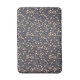 Seamless floral pattern of delicate pink buds on slender brown branches against a dark blue background, creating an elegant, calming design.