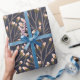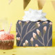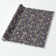 Seamless floral pattern of delicate pink buds on slender brown branches against a dark blue background, creating an elegant, calming design.