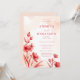 Delicate Romantic Bloom Juicy Red & Pinky Pink Editorial Wedding Invitation with Back QR Code.