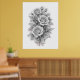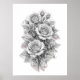 A beautifully detailed pencil-style illustration of a classic rose bouquet, featuring three fully bloomed roses surrounded by delicate buds and softly veined leaves. This black-and-white artwork highlights fine linework and subtle shading, creating a timeless, elegant look that works with any aesthetic.