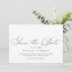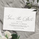 Enkel och elegant sparar datumet med ett vintage-stil-skript. Svart teckensnitt på vit bakgrund.