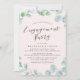 Inbjudan till förlovningsfest i elegant är perfekt till använda för förlovningsfester i vår och sommar. Utformningen har en modern botanisk krans med vattenfärg i grönten, snyggtens kalligrafi, en ljus rosa bakgrund på framsidan och en grönt färg på baksidan (ändra bakgrunden färg med Anpassad verktyg).